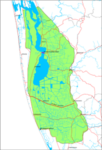 Spread over about 55,000 ha in 10 taluks (sub-district administrative divisions) across the three districts of Alappuzha, Kottayam and Pathanamthitta, Kuttanad’s geography is marked by a deltaic formation that arose out of the confluence of five major rivers, namely, Achancovil, Manimala, Pampa, Meenachil and Muvattupuzha. About half of Kuttanad’s area lies 1 m to 2 m below mean sea level. Here rice is cultivated in below-sea-level fields that were reclaimed, with the active encouragement of the rulers of Travancore, from the Vembanad Lake in the 19th and 20th centuries.