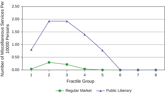 There was no public library nor a regular market in any of the villages in fractile groups 6 and higher (Graph 8).