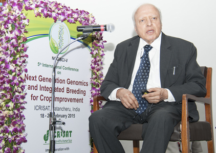 Figure 1 Professor M. S. Swaminathan at the 5th International Conference on “Next Generation Genomics and Integrated Breeding for Crop Improvement,” ICRISAT, Hyderabad, February 2015.