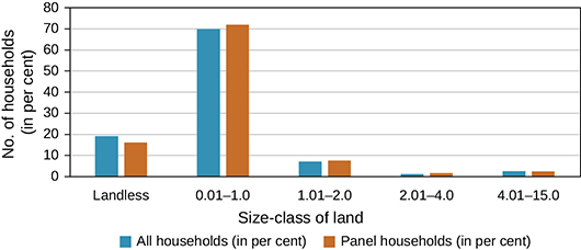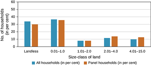 Appendix Figure 3 Proportion of longitudinal and panel households, by size-class of land holdings, Harevli, 2006 in hectares and per cent