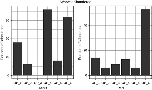 Figure A3 Labour time absorbed in each crop operation as a proportion of labour time absorbed in all crop operations in a season, Warwat Khanderao in per cent