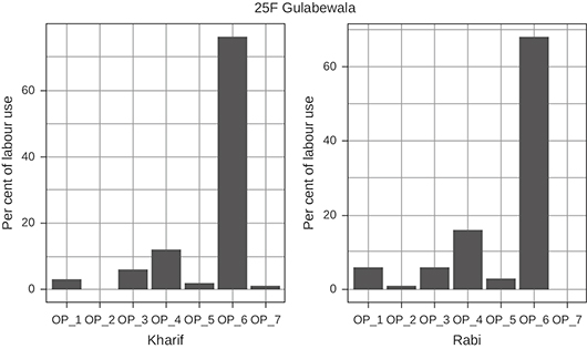 Note: OP_1 = Land preparation, OP_2 = Sowing/transplanting, OP_3 = Irrigation, OP_4 = Weeding, OP_5 = Intercultural operations, OP_6 = Harvest and post-harvest operations, OP_7 = Miscellaneous operations.